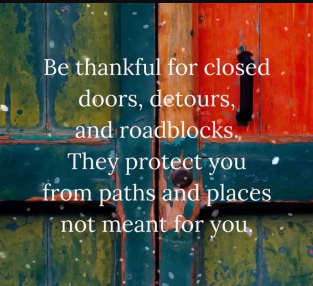 “It seems as if every time in my life that I thought the Lord was taking something away..or even thinking He just wasn’t answering me and my prayers that I was praying for..that none of those things were true..it says to be thankful in your life for the detours, the roadblocks and all of them closed doors that has been in your life..for it says that God, our Lord and Savior was protecting us from paths, and from places that were not meant for us..Amen..for how many of ya now in your life can take a look back over your life and see Gods hand there directing you and rearranging you to other places then from the place that you were wanting to be at in your life..and now you see the reason why the Lord closed the door..that the Lord in all of His wisdom said no to you..so today I may not know where you are in life..or what your praying for and it may seem that God isn’t hearing you or even answering you..but I would say to you that He is hearing you and your request and He is answering you..Amen!”