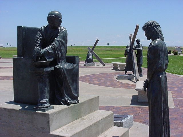 “And at how it is the most calmest place..so peaceful there..it’s an open field..completely huge..and it has truck parking of course..and not many is ever there..there is a bible book store there and it has everything in it..completely beautiful..and there was this little tiny older woman who worked there..and she would be all by herself..Amen..but again she wasn’t afraid..for she as well knew that the Lord was with her..Isaiah 41:10..Amen..and it also has a theater there were they show the clip of Jesus going to the cross and the torment..the pain and suffering that He endured while carrying His cross to calvary for whosoever will..Romans 10:13-15..Amen..but the thing that really got me the first time was when I begin to walk down that pathway and I walked right into the Lord standing in front of Pilate as Pilate is dipping his hands in the water representing that the blood of Jesus was off from him and he washed his hands from it..Matthew 27:24..Amen..but the whole experience was the fact that these bronze statues were life size..and my oh my it really took my breathe away..I stood there and there was such an innocence in the eyes of Jesus..as He held his head down and never to speak a word to defend Himself..Matthew 27:11-26..Amen..and I just began to cry as I stood there with His presence all around me as I took it all in..Amen!”