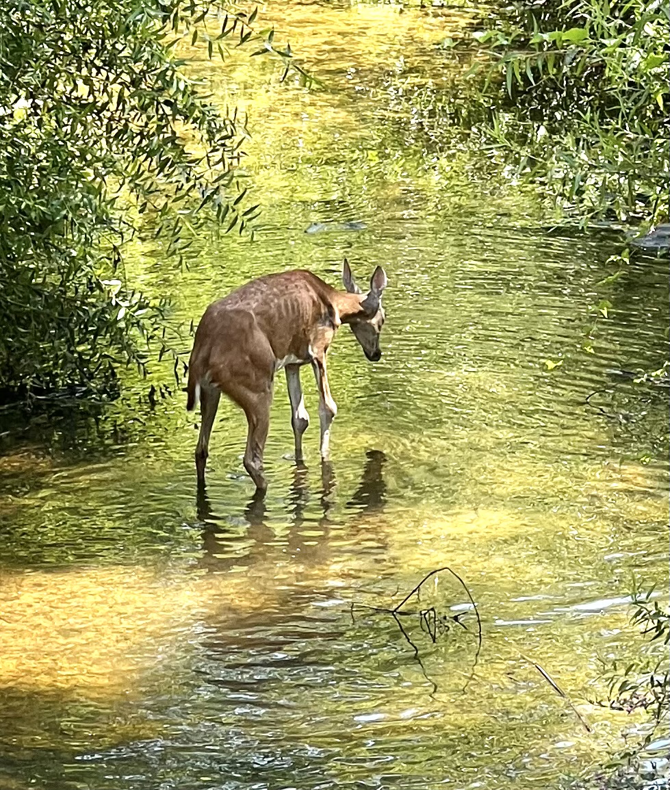 “So this morning as Erik and I was walking back to the truck from having breakfast at Cracker Barrel we crossed over a little bridge that had a creek under it..and as we did there was this deer..and it didn’t look all that well to us..he was walking slowly and kind of wobbly..but as I seen him there in the water I thought of these two different scriptures in the word of God..Amen..such as the Lord leads us by the still waters..He restores our souls..Psalm 23:2-3..Amen..and as a deer pants for the streams of waters so my soul pants after You, O God..Psalm 42:1..Amen..and as I stood there looking at the deer as he looked back at us..I couldn’t help but say a prayer for that deer..Amen..but as I was I kept thinking Lord you are already taking care of him..Lord you did lead him here to the waters..Amen..and I thought about how the Lord does the same for us..He guides us and meets us at exactly the right time..He satisfies our thirst and quenches it just as He was for that sweet baby deer..Amen!”
