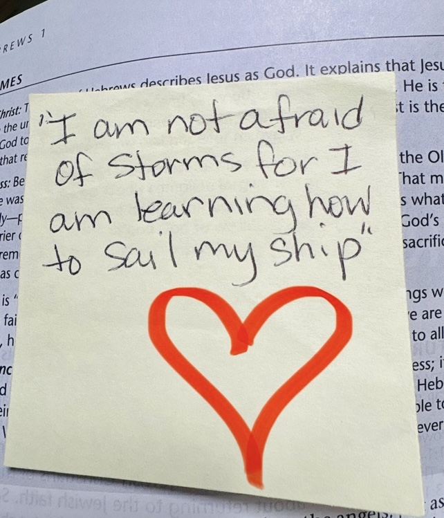 “For I can say to us all that whatever way we decide to go in our lives..as far as being content and not being content..we are gonna face the life and choosing of it..Amen..and I don’t know about you all but it’s a great thing to simply be content in all things..regardless of any of it..stuck in traffic..in a season of waiting..in a moment of lose and pain..that in any and every bit of it..that on the inside of us and who we are we are at peace..and we are content..that is a beautiful thing to say the least..because serving Christ is us looking upward into the heavens and knowing that this too shall pass..all of the stress..all of the worries..all of the fear the doubt..every ounce of it one day will pass away..and our job while here is to be a light to the world in which we are living..to shine as brightly as we can while here..doing the best we can with what we have..and knowing that God is with us through it all..Amen..so my friend sent me this saying this morning and it said this..’I am not afraid of storms for I am learning how to sail my ship!’..Hallelujah..so this day I pray for us all to be well and to be whole on the inside of who we are as a child of God..knowing whom it is that we belong to..and that we are content in and through it all..that we look up into the face of Jesus and get everything it is that we each need for this day of our lives..and that we choose to live in our moments that are right now before our eyes..and that we are thankful and choose to be thankful for it all..as each of us are truly learning every day how to sail our ships in the midst of all adversities and storms that this ole world and life may try to place and bring upon us..Amen!”